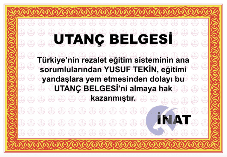 Milli Eğitim Bakanı Yusuf Tekin, yukarıda bahsettiğimiz ve bahsetmediğimiz bütün sorunların sorumlusudur. Yusuf Tekin, bu köhne eğitim sisteminin mimarlarındandır. Biz öğrencilerin Yusuf Tekin’e notu kocaman bir sıfırdır. Yusuf Tekin bu sayede ‘‘Utanç Belgesi’’ almaya hak kazanmıştır.